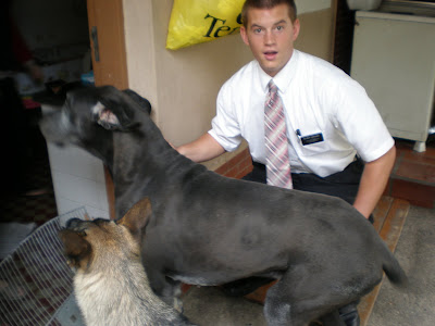 Anyway, no more time. I'll attach a photo of the freakin' sweet dog, my desk (not sure why, just took a photo of it this morning and thought you might want to see), and my name tag. Hooray! Love you guys, thanks for all the emails again. I am still kind of living from p-day to p-day right now and it's great to receive all of your emails each week and hear about what's going on. Later!